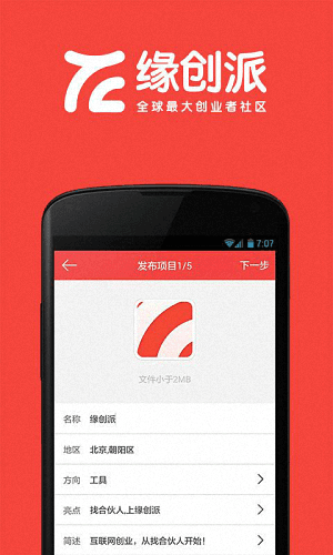 缘创派安卓版是一款非常实用的手机社区交流软件,你能在这里快速地找到志同道合的好友,还能随时随地的查看各种不同的创业项目,而且还能快速地加入你感兴趣的创友圈。