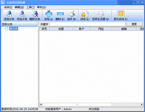 实创密码保险箱是一款体积小巧功、功能实用的密码管理工具,界面简洁,一目了然。随着互联网的兴起,网站账号注册、邮箱注册、论坛注册都会需要用户设置密码,然而随着时间的延长,很多密码都会忘记,实创密码保险箱能够帮助用户记录和保管密码,方便快捷。