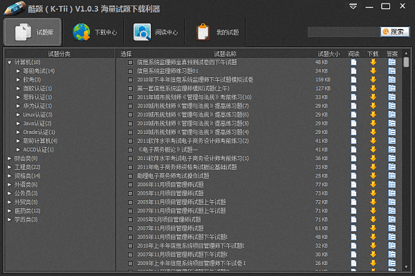 酷题(K-Tii)是一款功能全面丰富的海量试题下载软件,支持试题阅读和下载功能,内含近200种考试试题,其中包括模拟题、历年真题等多种题型,同时软件还具备强大的搜索功能,支持关键词搜索,能够帮助用户快速找到想要的内容,简单快捷。