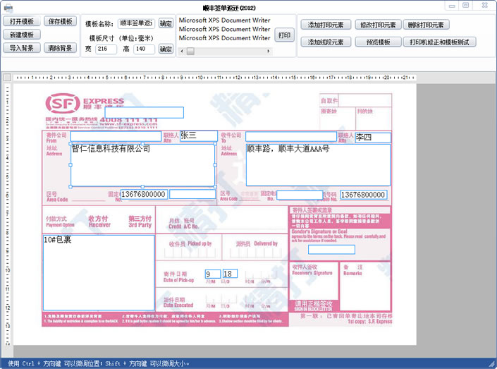 顺丰快递单打印软件是一款轻型的快递单打印软件。内置所有顺丰模板,包括国内、国外、港澳台、签单返回、大客户VIP专版等模板,您可以直接填写面单内容,点击打印即可生成快递单,方便快捷。
