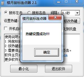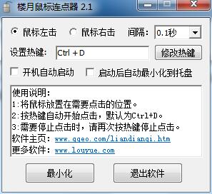 楼月鼠标连点器是一款免费的鼠标自动模拟点击器软件,该软件能够模拟鼠标左击,鼠标右击两种鼠标单击事件。自动点击间隔时间可根据需要设置。软件小巧,只有14.8kb,设置简单,操作方便,是游戏玩家,网络抢购必不可少的利器。本站提供新版免费下载,欢迎有需要的朋友下载使用。