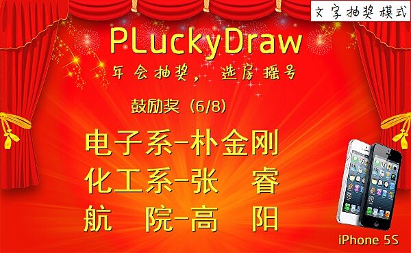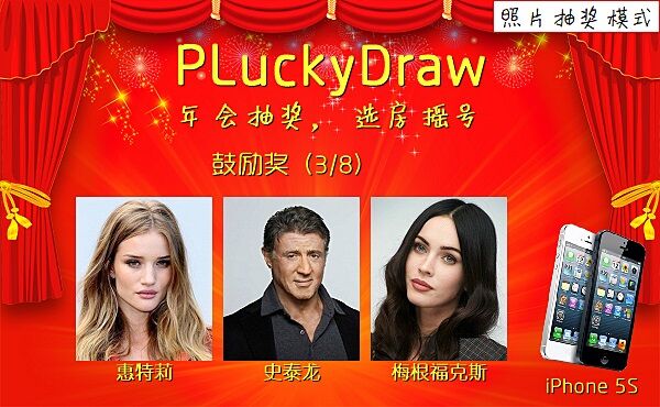 PLuckyDraw是一款功能强大的年会抽奖软件,专门为晚会抽奖、年会抽奖等环节量身定制,免费版的PLuckyDraw限30人使用,支持图片或文字抽奖,界面简洁,支持自定义背景图片,操作简单,欢迎下载使用。