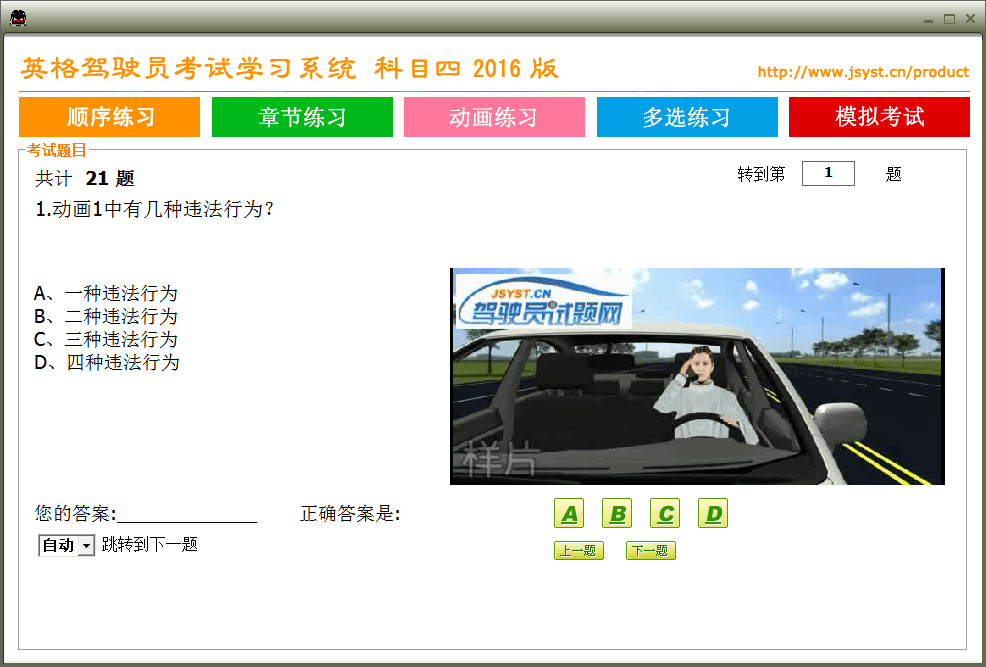 英格驾驶员考试学习系统科目四单机版是一款优秀的驾考学习软件,该软件拥有海量官方题库,用户可以顺序练习、随机练习、动画练习、多选练习,还可以进行模拟考试,有效帮助学员通过科目四考试。