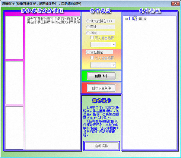 名捷排课王是一款功能全面、操作简单的自动排课软件,能够帮助教师快速整合相关信息,智能安排课程,具备体积小、运行效率高的特点,无需安装,下载后双击文件即可使用,界面简洁友好。欢迎下载使用!