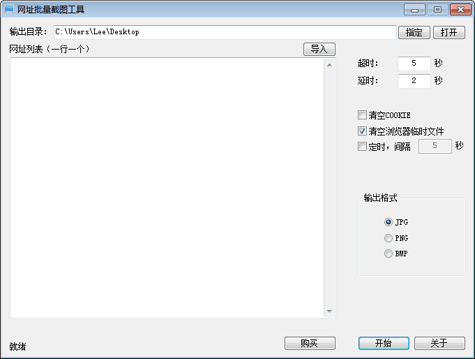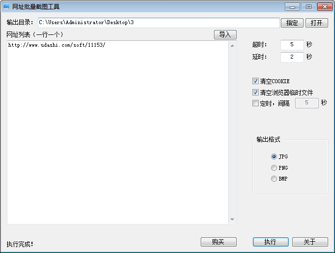 网址批量截图工具是一款优秀的网站地址快速截图软件,用户将网址输入后选择好网址路径,设置好相关事件,即可进行批量生成图片,可设置延时截图,可设定定时截图,功能强大,操作简单,非常快捷方便!