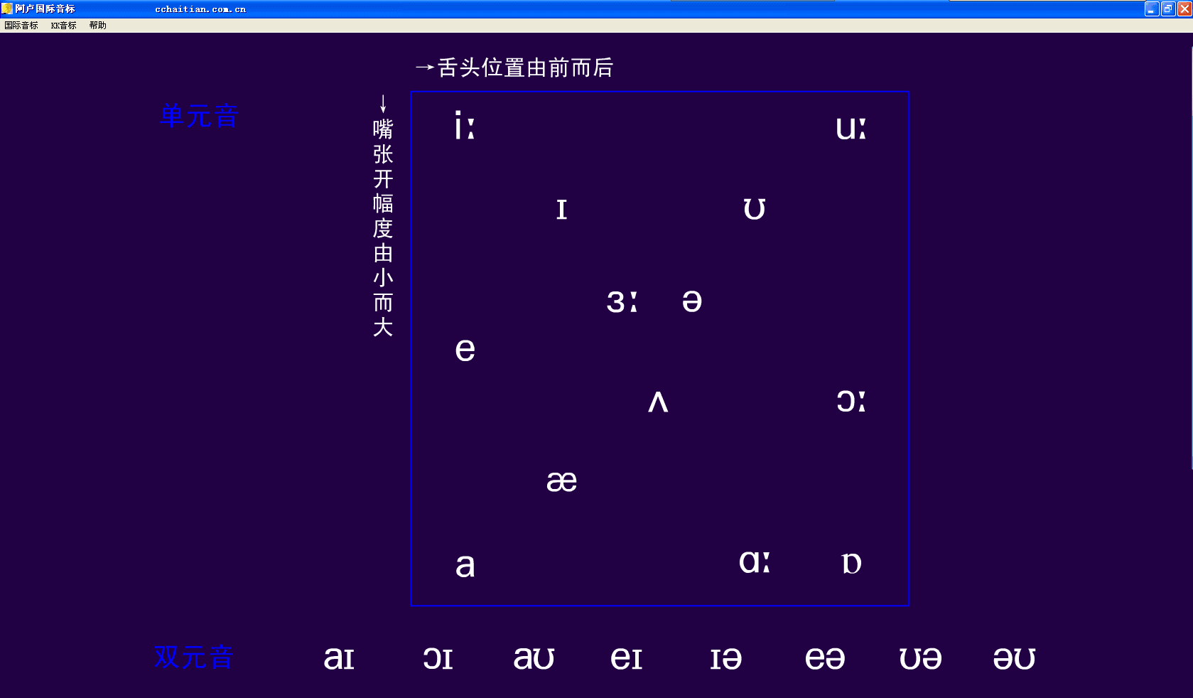 阿卢国际音标软件是一款用于快速取得英语音标和英语单词发音学习测试软件。帮助人们学习英国英语国际音标,美国英语国际音标,美国英语KK音标。开发采用新的音标符号写法,语音纯正,使用方便。