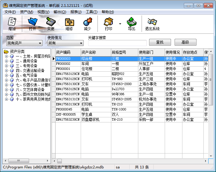 维克固定资产管理系统是一款好用的固定资产管理软件,该软件能够提供多种计算方法,能够为固定资产折旧选择佳的方案,固定资产增加、变更、维修及盘点、折旧和资产减少都能实现。