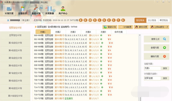 乐赢通北京PK拾计划是一款非常实用的北京PK拾彩票辅助工具,该软件功能全面,拥有计划方案、定值倍投、恒遗计划等多种功能,能够依据玩家设定的中奖金额匹配高收益率的选择方法,还有新版富含定位、大小、单双等多种常用玩法。