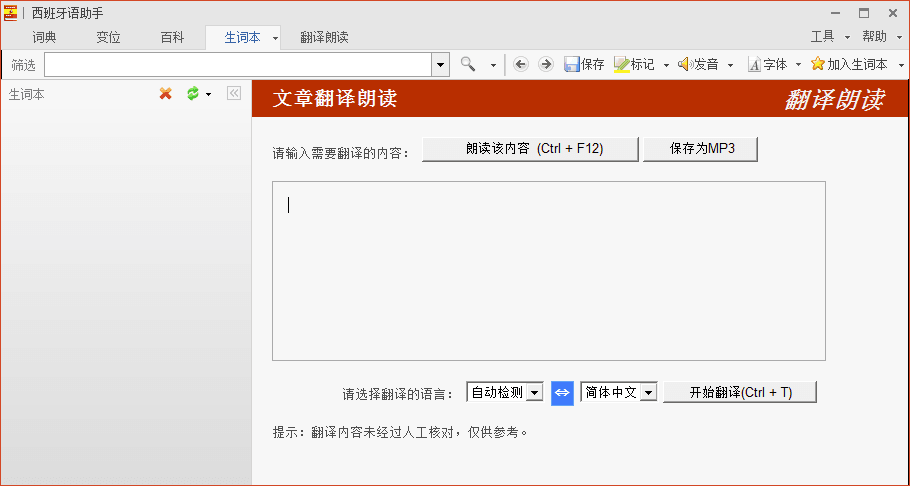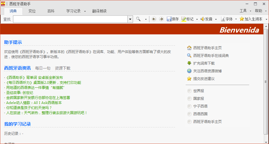 西班牙语助手是一款专门针对西班牙语爱好者的学习软件,包含西汉、汉西、西西、西英词典、动词变位查询等功能,拥有海量内置词库并且支持外部词库拓展。还拥有生词本还有声翻译等实用功能,是西班牙语学习者必备的学习软件。