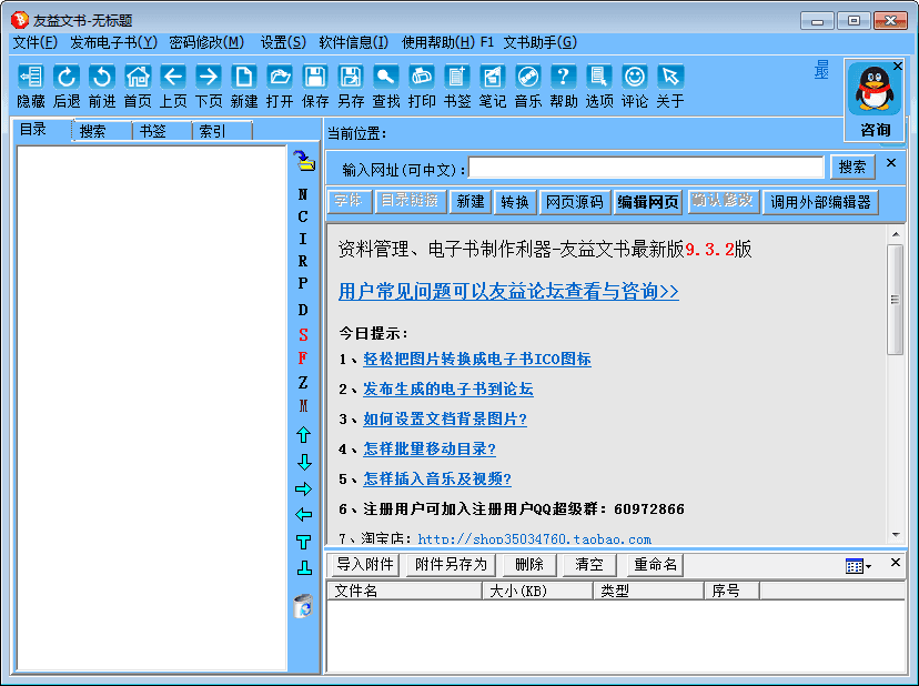 友益文书是一款优秀的文件管理软件,常见资料、多媒体课件、网页文件等都能进行管理,还可以制作电子书,软件界面直观,目录树结构管理,所见即所得的设计理念,非常好用!