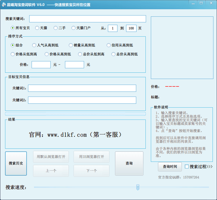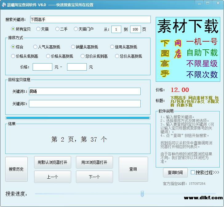 晨曦淘词是一款淘宝辅助工具,晨曦淘宝查词软件支持查找淘宝、天猫宝贝所在的网页位置和排名等功能,搜素速度非常快,能大大提高您的工作速度无论你是店主想要做搜索排名、还是买家想要快速找到商品,都会有很大的帮助!