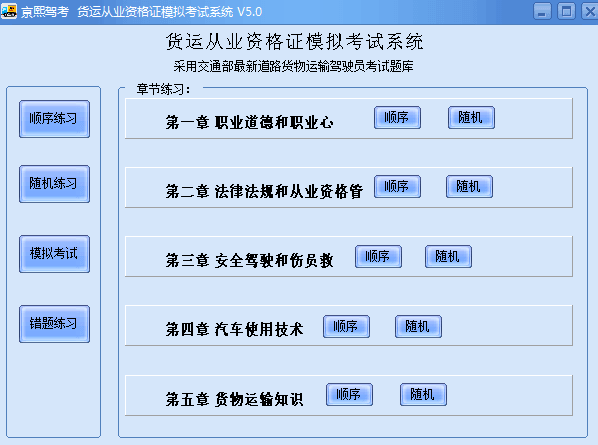 货运从业资格证模拟考试系统是一款为备考货运从业资格证的人员提供模拟考试的实用软件,软件是单机版,无需联网,无使用时间限制。