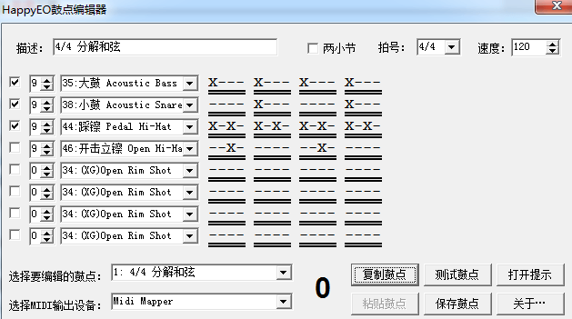HappyEO鼓点编辑器是一款由HappyEO官方推出的一个乐器演奏软件,完全免费,没有任何功能限制,用户使用这款软件可以自己自由编辑和学习各种鼓(打击乐器)的节奏,内部预置了十几种在《HappyEO电子琴》中的节奏。