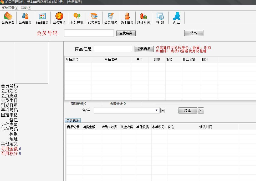 旭荣美容店会员管理系统专为美容店设计,包括会员类别,会员信息,商品类别,商品信息,商品进退货, 记次项目信息,员工信息管理等功能。