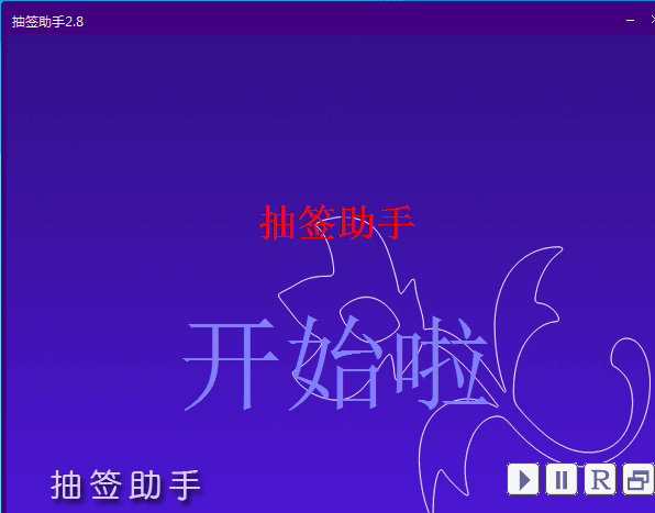抽签助手是一款简单实用的抽签工具,特别适用于开主题班会、游戏抽奖、问答抽奖等各种类型的活动抽奖,界面设计简单,便于操作,它是一款非常强大的抽签软件,完美的运行在各行各业中!