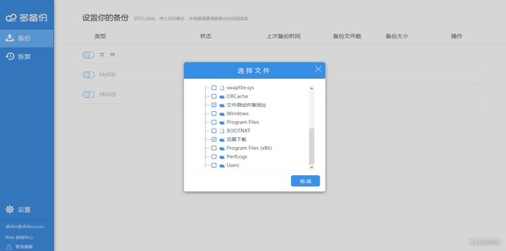 多备份客户端是一款非常专业的Windows客户端数据云备份软件。该软件能帮助用户进行一键自动高速加密备份数据、实现本地与异地多重保护,同时极速恢复数据,轻松保护您的数据信息安全。
