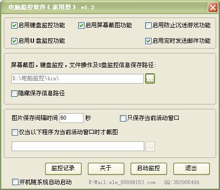电脑监控是一款绿色小巧的电脑监控工具,本程序为绿色程序无需安装,可直接运行,本软件能对电脑的使用情况进行全面的智能监控。无论是聊天信息、还是在电脑上的文件操作,所有的电脑使用情况都可以被准确的监控。