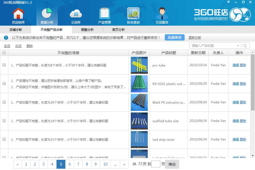 360旺店国际版是一款网店排名优化工具,软件专门为爱丽阿里国际站设计,主要功能是富辅助排名优化推广多功能软件,通过360旺店可实现高质量产品发布,全网关键词搜索覆盖,关键词排名查询跟踪,批量编辑产品,店铺诊断等功能,能有效提升网店排民。