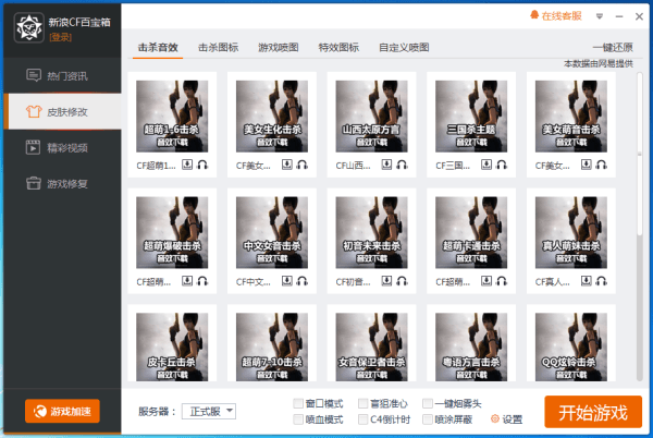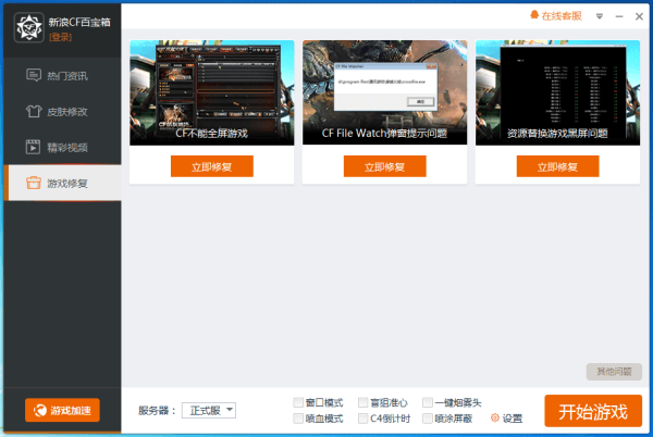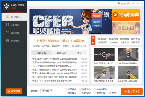 新浪CF百宝箱是一款专业的CF辅助工具,专为CF玩家和爱好者们量身打造。支持CF窗口化,提供CF挤频道、皮肤修改等实用功能,是目前好用的CF辅助工具,深受广大玩家的喜爱。