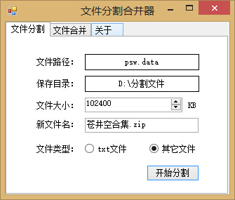 文件分割合并器是一款能够针对Txt文本进行文件分割和合并的小工具。 这是一个支持任意文件分割、合并的小程序,对分割Txt文本文件做了特殊的处理,使得分割此类文件后不会导致文本文件乱码,是一款很好的分割合并软件。