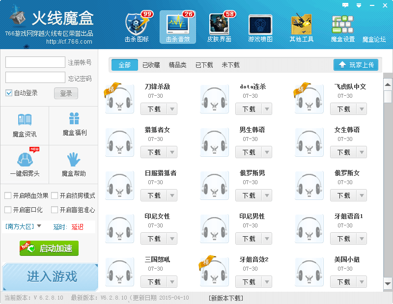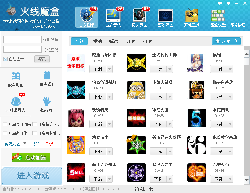 火线魔盒是一款针对cf的游戏插件。该插件主要用来增加游戏体验,让用户能够让更畅快的体验游戏快感,软件集游戏图标下载、游戏加速、击杀音效等诸多功能于一体,让玩家的cf竞技乐趣无穷。