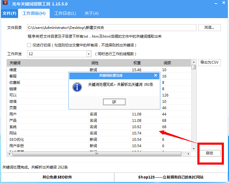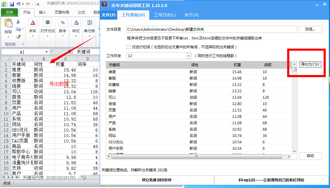 光年关键词提取工具是一款杭州光年(shop123)开发的网站关键词提取工具,是一款网络推广辅助工具。通过光年关键词提取工具 可以帮你提取出关键词,并对关键词频率、权重进行归纳。只要导入文件夹中的txt,htm或是html文件即可帮助你提取出这些网 页或文章内容中出现的关键词词性,权重和词频,整合整个网站内容,让你清楚看到该行业还有哪些重要的关键词,解决了关键词流失难题。