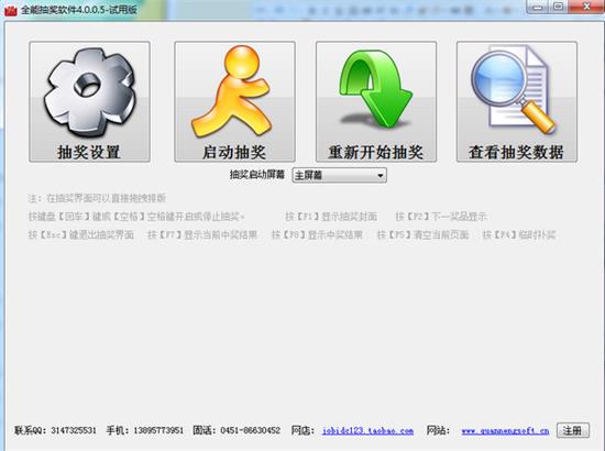 全能抽奖软件是一款支持文字抽奖、图片抽奖的多功能抽奖软件。该软件界面完全自定义,软件绿色安全、免安装,适合各种场合抽奖活动:企业年会、商场活动、结婚喜宴等等。更过丰富功能请下载体验,软件免费哦!