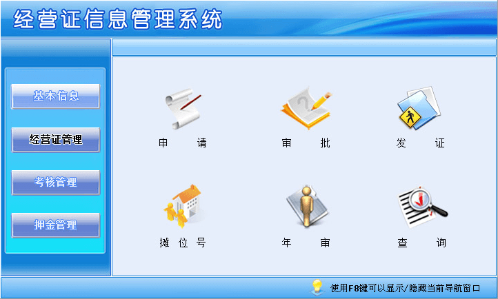 宏达经营证管理系统是精巧实用的行业信息管理软件,专门为农贸市场开发量身定制,界面简洁直观,包括基本信息、押金管理、考核管理、经营证管理四大功能模块,操作简单易上手,是帮助您经营农贸市场的好帮手。