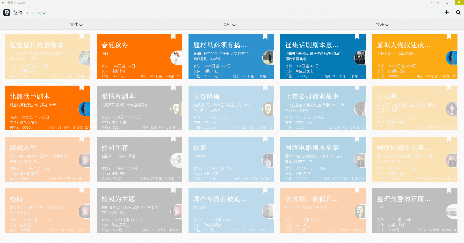 壹剧本一款剧本爱好者及导演必备的交流平台。演员,导演,制片人等等业界大鳄在这里每天都有交流哦,对于那些非常有创作灵感,却无力实现你的作品的价值的人来说,这款软件无疑是一款福音,也许你发表了你的作品,正巧,制片人看到了,也许你的机会就来了!