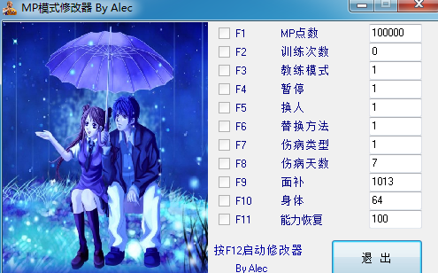 nba2k10生涯模式修改器是一款根据同名游戏设计的辅助工具,软件绿色小巧,使用简单。你可以利用它轻松修改MP点数、训练次数、替换方法、伤病天数等,界面简洁直观,操作容易。