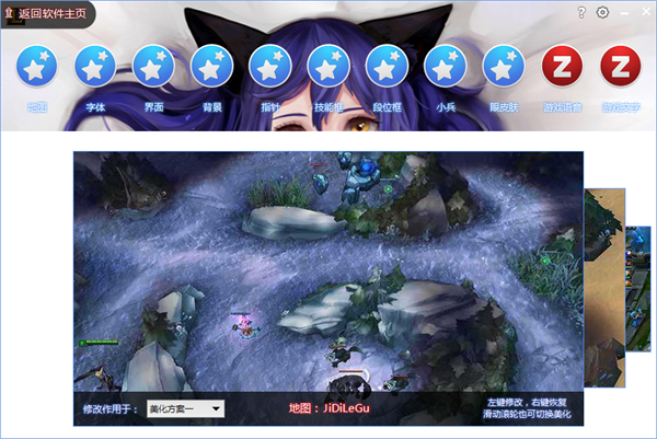 LOL美化大师是一款功能强大的英雄联盟美化助手软件,可以让玩家自定义修改游戏界面,游戏地图,内置文本,英雄皮肤等游戏贴图,还可以自由转换外服语音,让你拥有不一样的游戏体验!