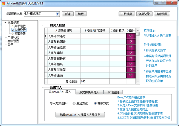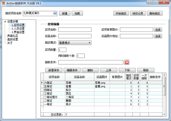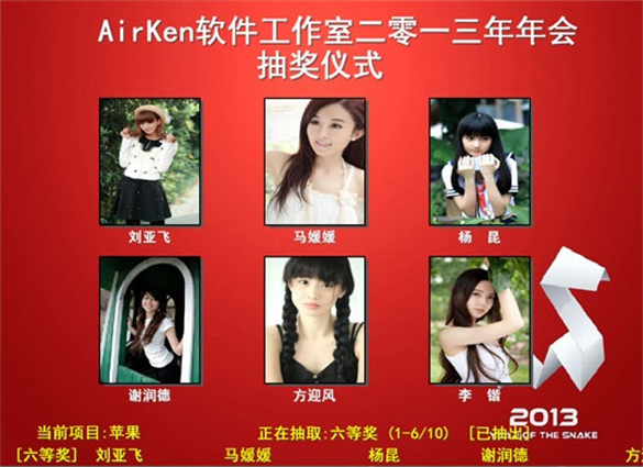 AirKen电脑抽奖软件是一款多功能的电脑抽奖软件,拥有高灵活度,高过程控制,超高稳定性及超大名单容量的特点。你可以自由设定每个奖项的中奖区域和比例,还可以插入照片、号码、文字等进行混合抽取。