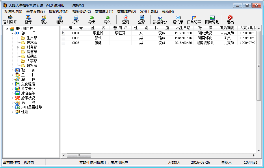 天皓人事档案管理系统适用于各大中小企业、学校、机关事业单位等进行人事档案管理。本软件功能强大、界面友好、运行稳定,是您进行人事档案管理的佳助手!