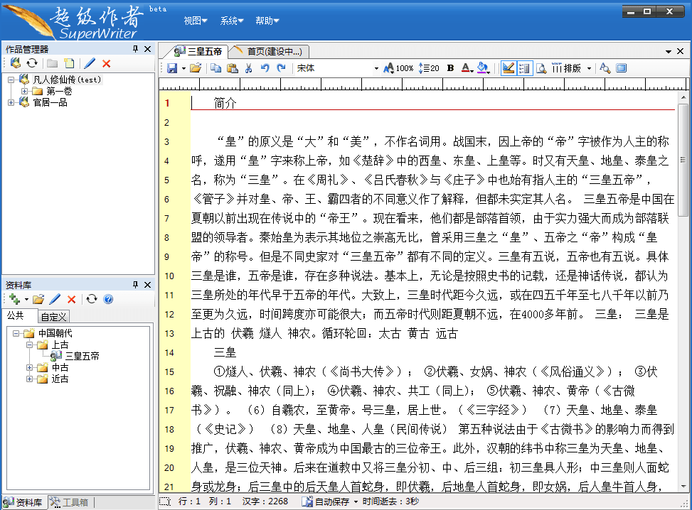 超级作者是一款全新的写作辅助软件,专为网络作者、写手设计开发,操作简洁、功能强大,可以提高写作效率及排除断电等意外干扰,从而让作者将精力集中于创作,并且完全免费。