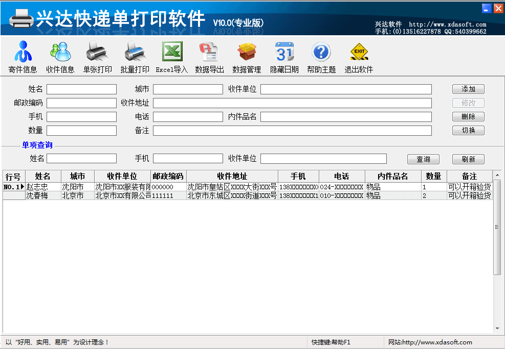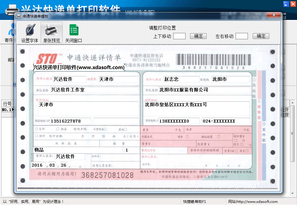 兴达快递单打印软件(专业版)是一款专门为使用快递单数量比较大的企业或淘宝店铺设计的快递单打印软件。软件界面友好,可操作性强,快递单可以单张打印或批量打印。使用兴达快递单打印软件的企业或淘宝店铺可以节省至少1名劳动力!