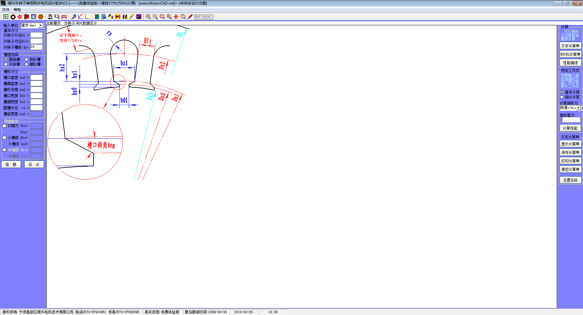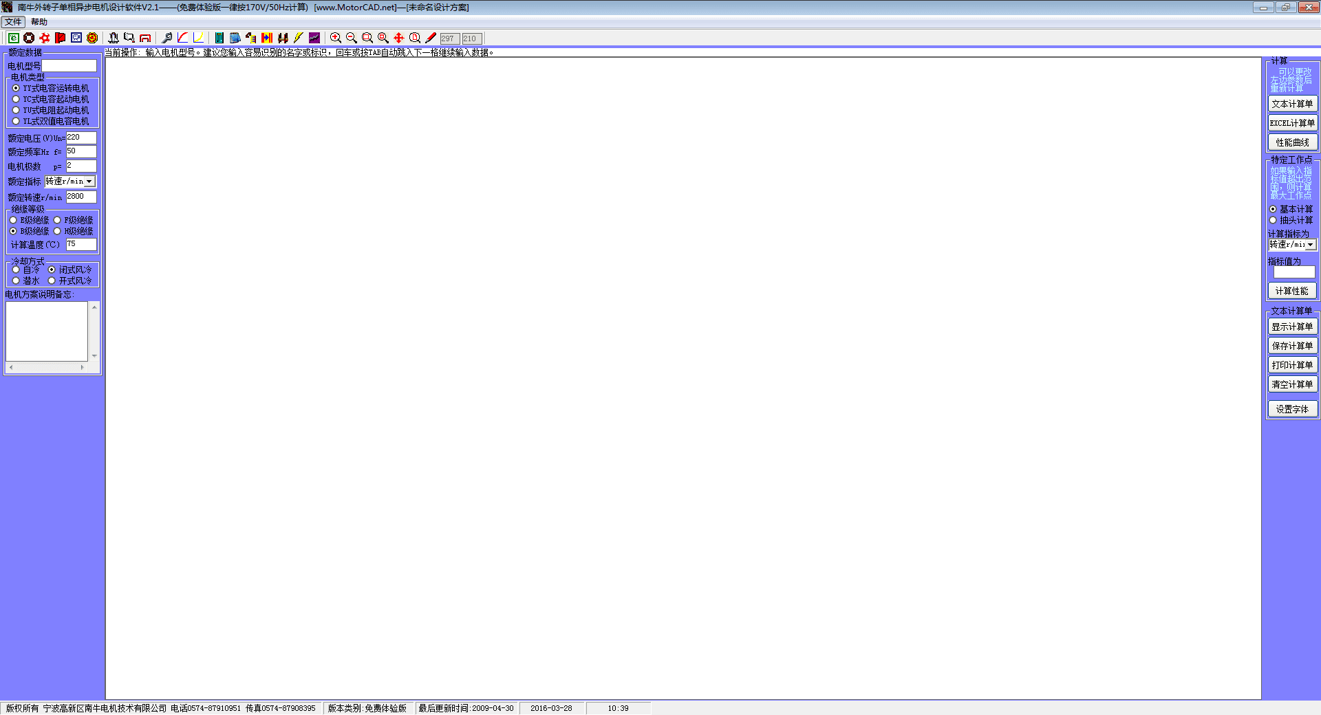 南牛外转子单相异步电机设计软件适用于外转子单相异步电动机的设计,包括电容运转、电容起动、电阻起动、双值电容四种类型,内定子可以计算双层槽电机,功能较为全面,具有较高的智能自动化水平,在电机电磁参数设计方面,可以在一定程度上替代电机工程师的劳动。