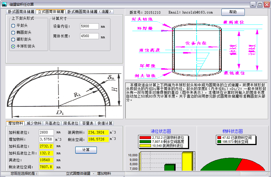 储罐容积计算软件是一款用于计算罐体容积的软件,该软件增加了6种结构形式模块,增加了4种计算模块,可计算多种封头形式,功能强大,简单易用!