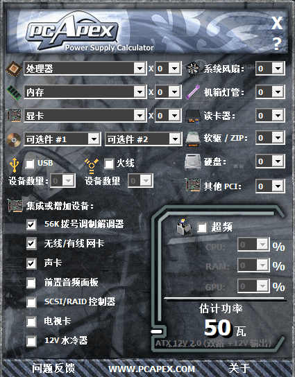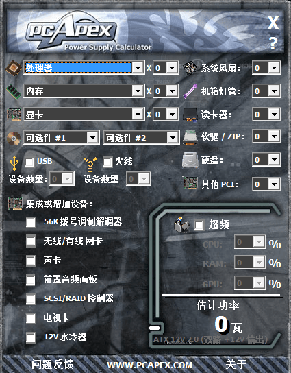 电脑功率计算器是一款简单实用的电脑功率计算软件,通过这款电脑功率计算软件就可以帮你轻松地挑选出适合自己功率大小的电源,特别适用于准备配置电脑的朋友。