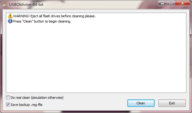 USBOblivion是一款U盘工具,它是免费的,主要是用来清除USB使用记录。它操作简单,需要注意的是使用前需要弹出所有的USB闪存驱动器再进行处理。它占用内存小,是一款小巧简便的工具。