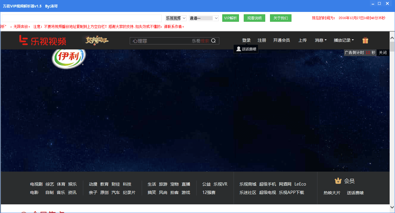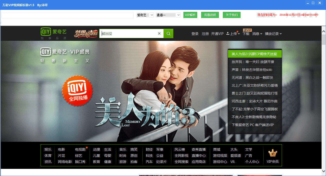 VIP视频解析播放工具是一款功能强大的视频解析软件,软件主要的功能就是解析包括爱奇艺,优酷在内的一些付费会员才能观看的电视,让用户轻松观看vip视频。