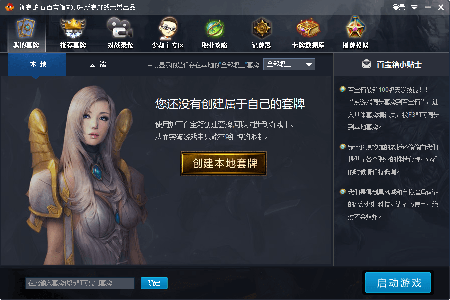 新浪炉石百宝箱是一款让你更快熟悉游戏,并且帮助你从新手成为高手的炉石辅助工具,是一款深受炉石传说玩家厚爱的辅助工具,欢迎各位炉石迷点击下载哦!