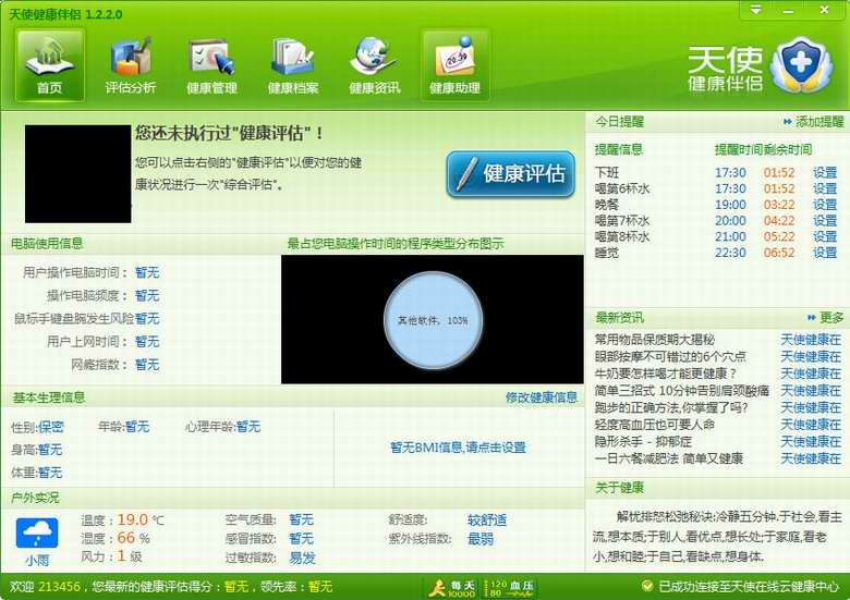 天使健康伴侣是一款查看用户身体健康状况的软件。该软件依据先进的数学模型,进行科学的评估,并给出评估得分、排名及提出合理化建议。