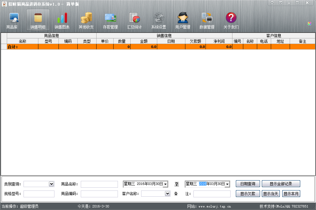 招财猫进销存管理软件是一款由长沙佳驰软件有限公司退出的专业为中小企业,个体商铺开发的进销存管理软件。软件支持详细记录您的销售、进货记录,并可以记录其他收款支出项目,自动汇总记录在数据库里。是一款用户体验非常好的软件,欢迎下载试用哦!