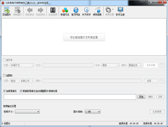 七彩色电子相册制作工具是一款简单易用的电子相册制作软件。本软件可以将多张图片制作成一个带有多种播放特效和背景音乐的mp4视频,制作过程非常简单,有需要的小伙伴可以来下载七彩色电子相册制作工具哦!