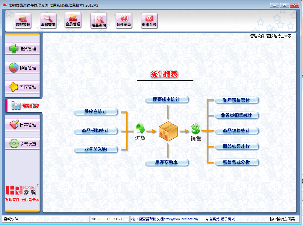 豪锐食品进销存管理系统是一款根据国家对食品安全监管的相关要求,结合国内广大食品流通企业的经营管理特点专门开发的食品管理软件。