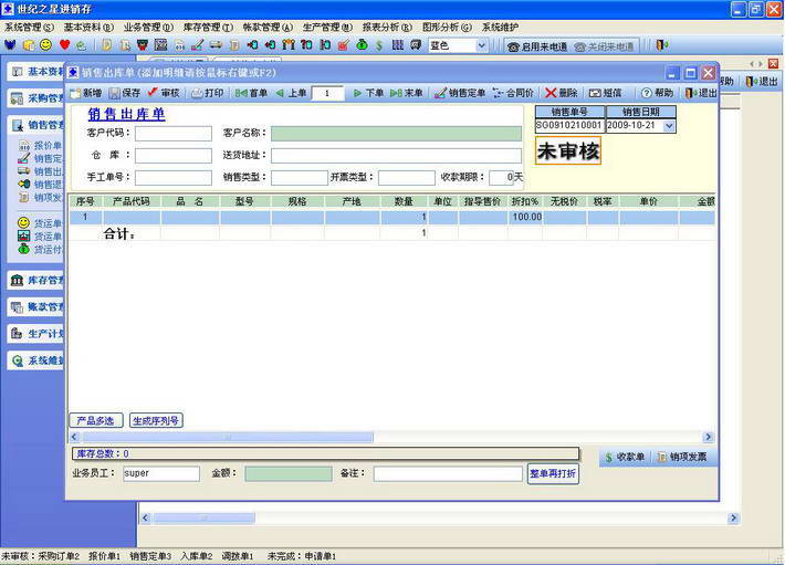 世纪之星进销存是一款功能专业、操作简单的进销存管理软件。它的界面非常简洁、功能丰富,可以广泛应用于食品、保健品、医药、批发贸易、电子、机械、化工等众多行业。支持数据备份,数据恢复,留言管理,操作日志,录入界面设计,可自定义各类报表及单据打印格式