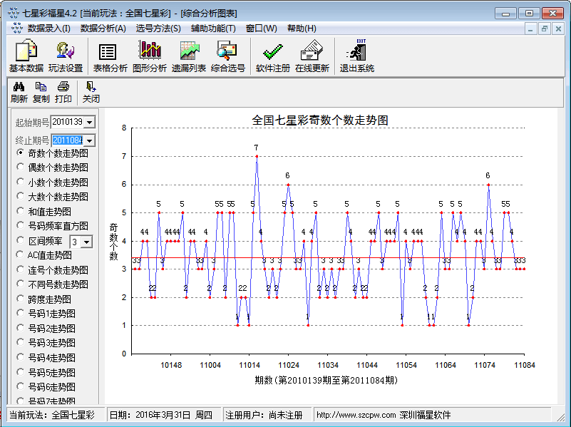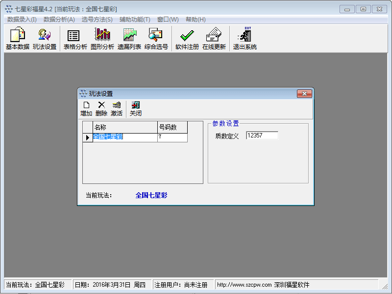 七星彩福星是一款分析七星彩数字型彩票的彩票分析软件。该软件简单实用,并且自由设定各项奖级、中奖情况、奖金,兑奖情况一目了然。