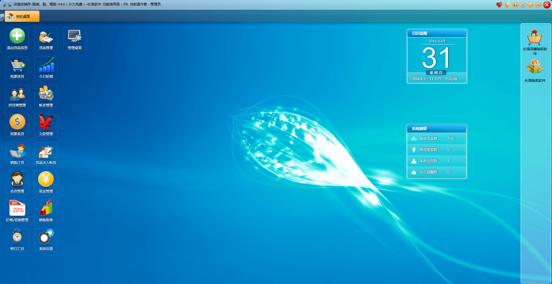 店猫进销存是长信软件为中小企业量身打造的一款简单实用的进销存软件。本软件永久免费、界面简洁、功能齐全、操作简单,用户无需培训即可操作管理。软件所有的输入都非常人性化,用户可使用本软件进行企业日常采购,销售,库存,帐务等管理工作,全面了解当天的经营状况,既省时又省力。