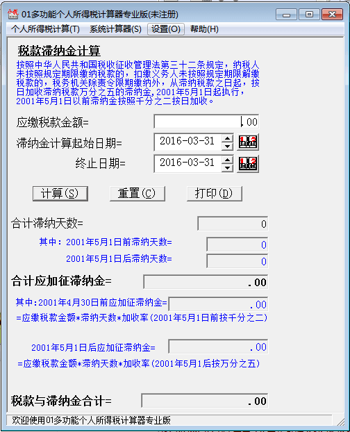 01多功能个人所得税计算器是一款史上专业豪华的“算、教”一体化个人所得税计算器。本软件适用于个人、企、事业单位财会人员、会计、审计、税务师事务所、各类咨询、经纪机构以及各级税务机关人员使用。