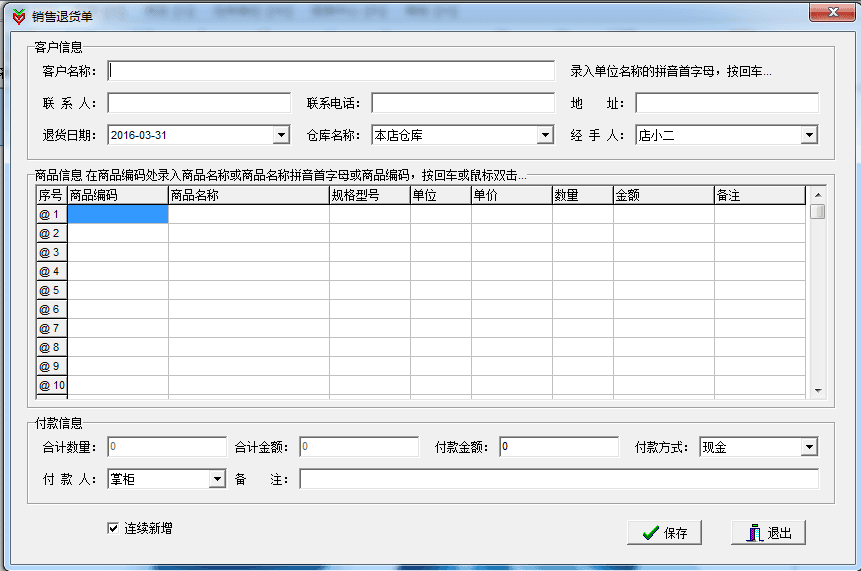伊特进销存是一款专业的销售管理软件。软件支持拼音码录入,有效减少用户的录入工作量,还具有完善的查询功能,所有查询结果可以导入EXCEL。界面设计简洁,美观,其人性化的软件流程,使普通用户不需培训也能很快掌握软件操作使用方法,上手极易。